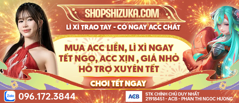 👉 Từ ngày 17/02 đến 17/03 khi mua acc tại SHOPSHIZUKA 100% có 1 lượt lì xì bốc thăm trúng thưởng.