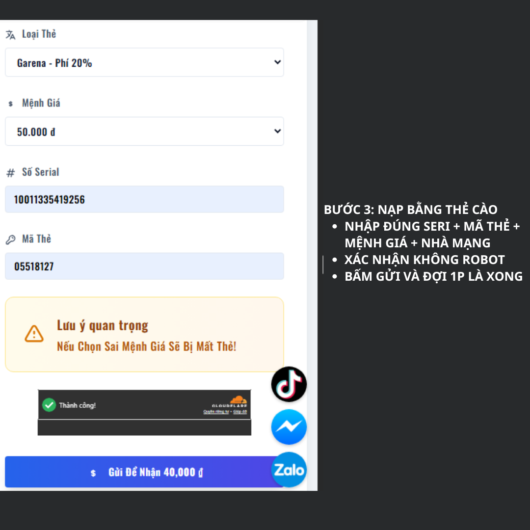 CÁCH 2: HƯỚNG DẪN NẠP TIỀN BẰNG THẺ CÀO