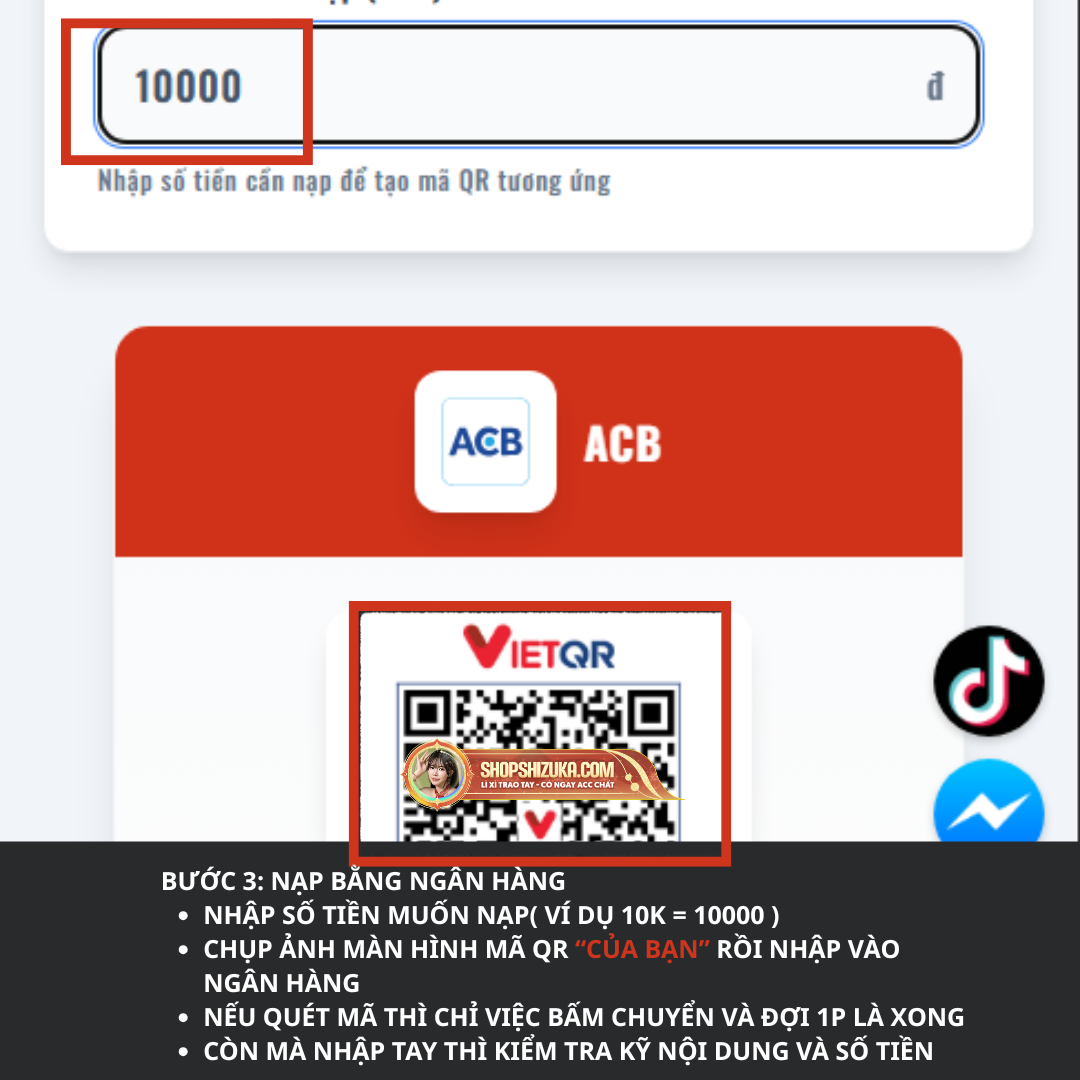 HƯỚNG DẪN NẠP TIỀN VÀO SHOPSHIZUKA